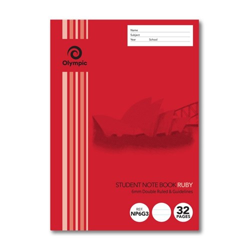 Olympic Exercise Book Double Ruled 6mm + Guide Ruby Red 32 Page np6g3