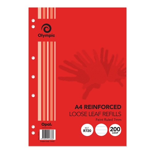 OLYMPIC LOOSE LEAF REFILLS A4 REINFORCED 7 HOLE PUNCHED 7MM PK 200 141421 R720 BTS