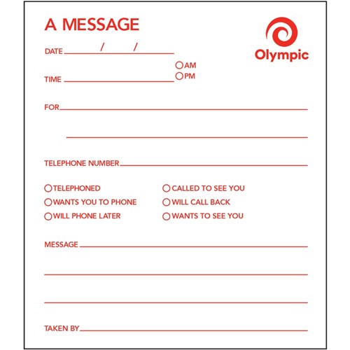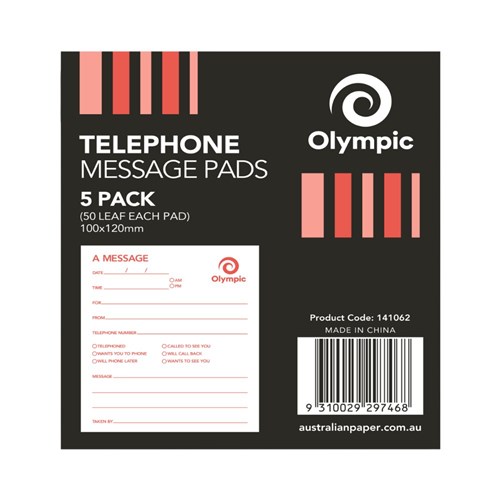 OLYMPIC TELEPHONE MESSAGE PADS 100x120mm 50 leaf 5 PACK