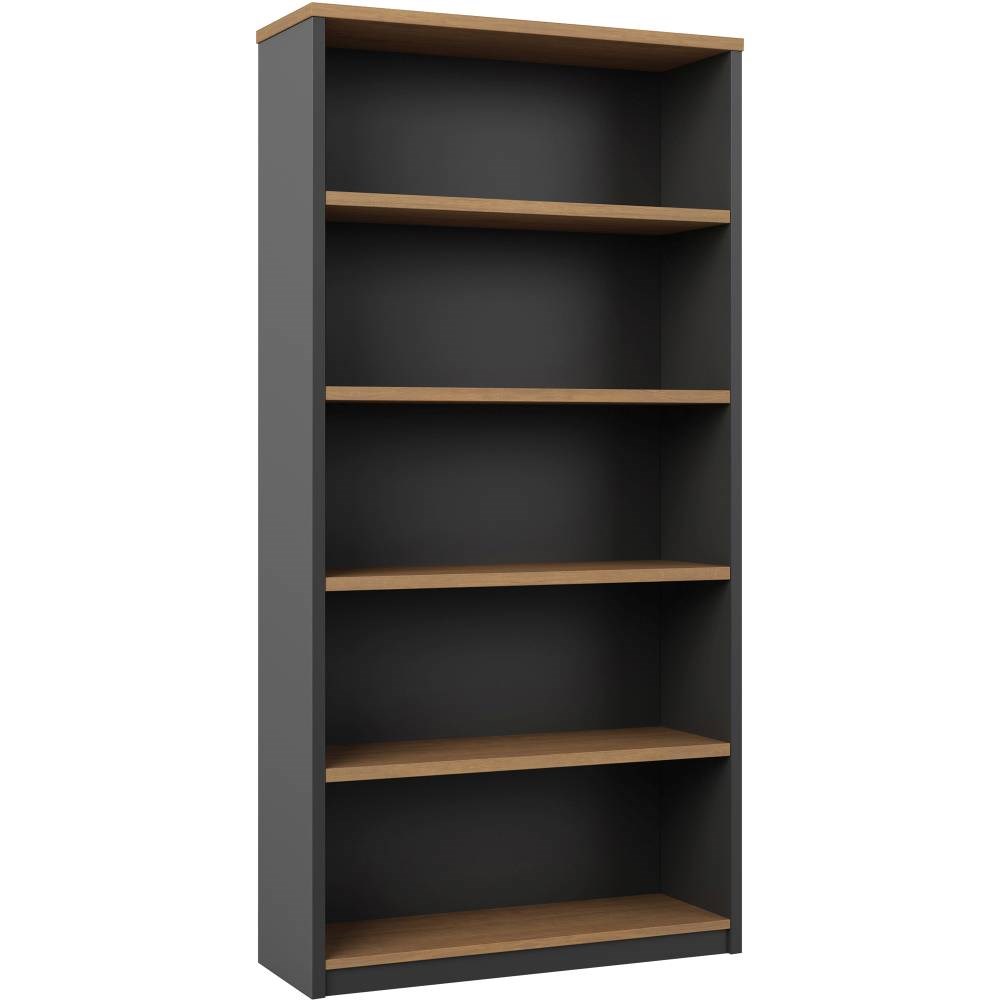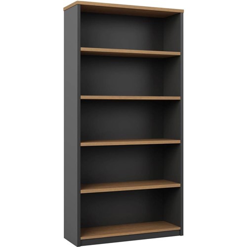 OM Premier Storage Bookcase W900 x D320 x H1800mm Regal Walnut and Charcoal