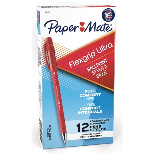 PaperMate FlexGrip Ultra Ballpoint Pens Medium 1.0mm Retractable Red Box of 12