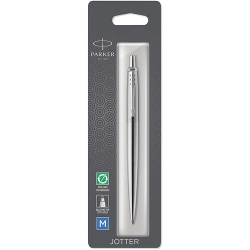 PARKER JOTTER BALLPOINT PEN Stainless Steel Chrome Trim Blue Ink
