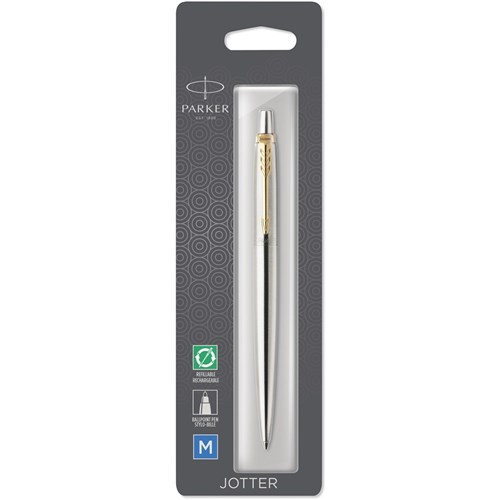 PARKER JOTTER BALLPOINT PEN Stainless Steel Gold Trim Blue ink
