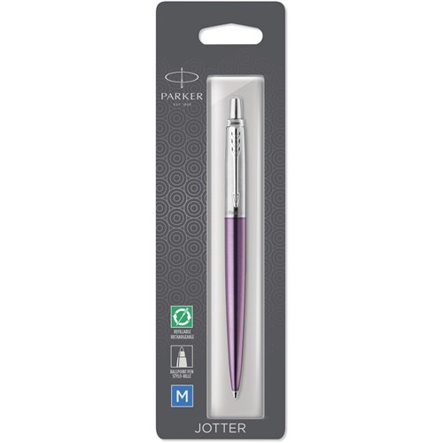 PARKER JOTTER BALLPOINT PEN Victoria Violet Chrome Trim Blue Ink