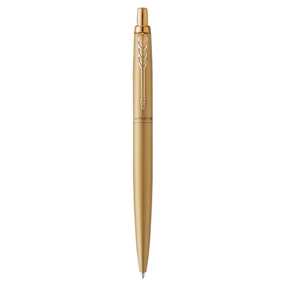 Features a bold yet refined matte gold cap and barrel paired with a matching shiny signature arrow clip.