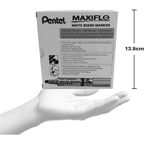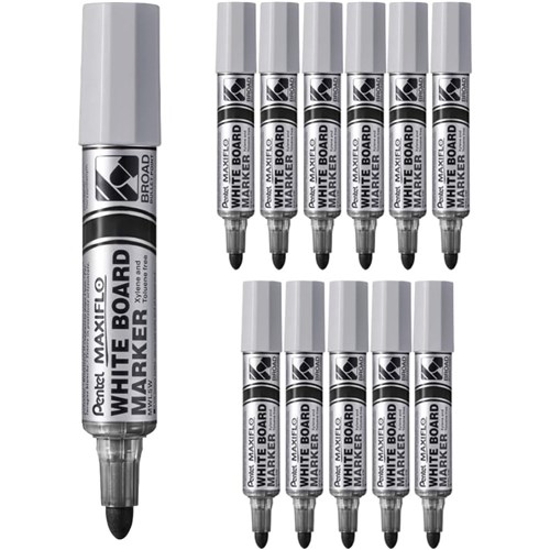 Pentel MWL5W Maxiflo Whiteboard Marker Broad Bullet 8.0mm Pump It Black Box Of 12