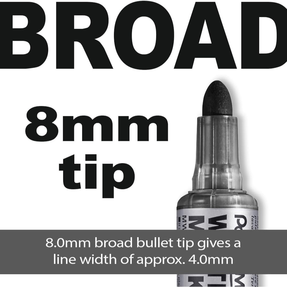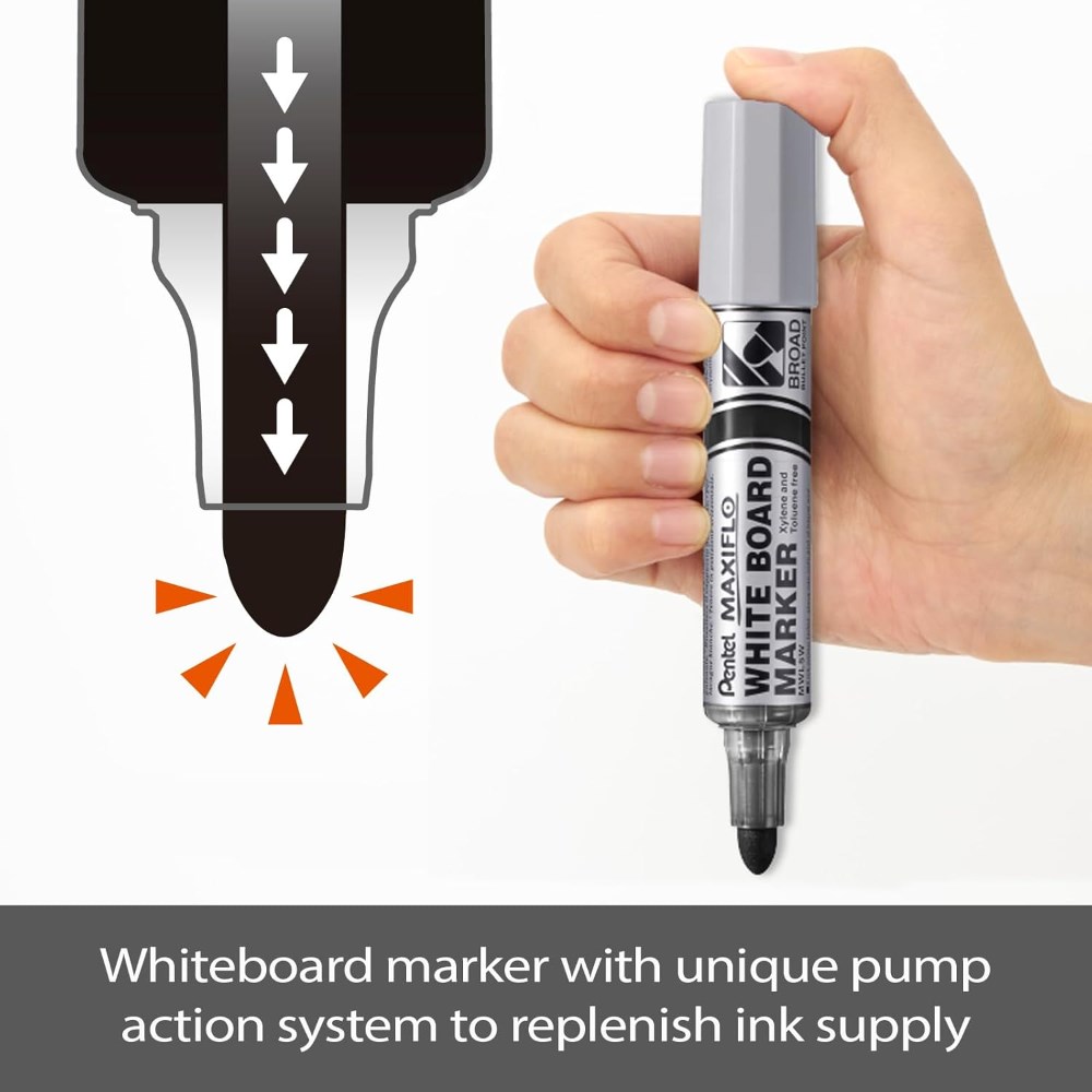 Pentel MWL5W Maxiflo Whiteboard Marker Broad Bullet 8.0mm Pump It Black Box Of 12