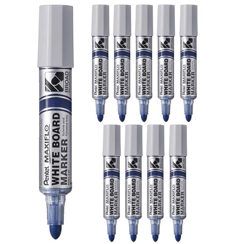 Pentel MWL5W Maxiflo Whiteboard Marker Broad Bullet 8.0mm Pump It Blue Box Of 12