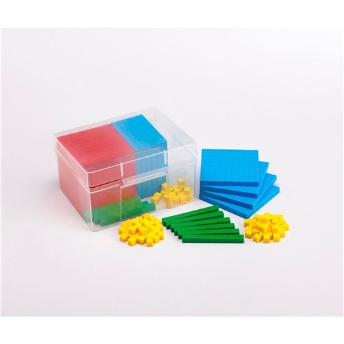Plastic Base Ten Set Includes Assorted Colours of 1 10 Rods, 10 Flats and 1 Block