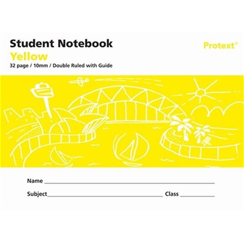 Protext Student Note Book 10mm Double Ruled + Guide Polycover Yellow 32 Page