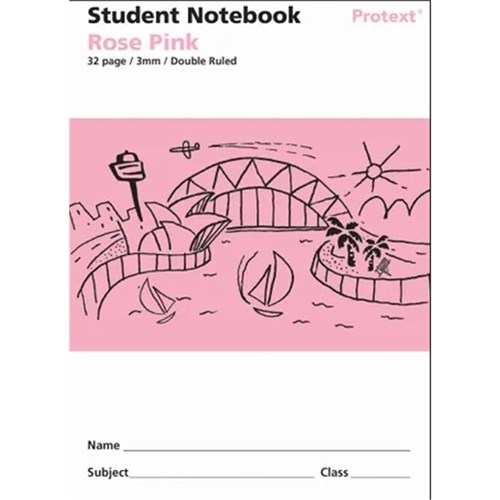 Protext Student Note Book 3mm Double Ruled Polycover Rose Pink 32 Page