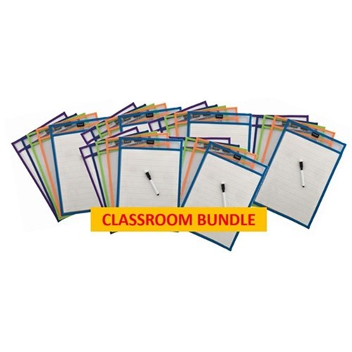 Protext Rewritable Pockets A4 With Black Markers Assorted Pack of 10