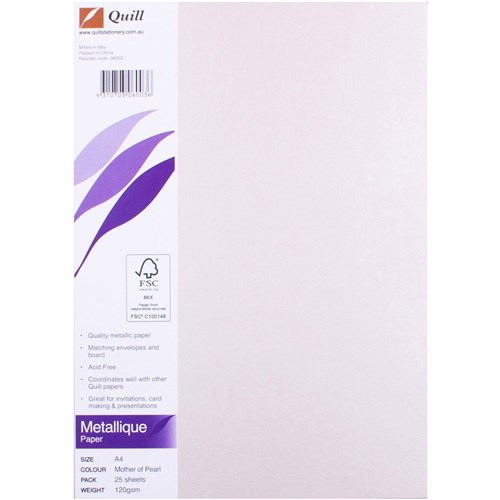 QUILL A4 METALLIQUE PAPER 25PK 120gsm Mother of Pearl 06003