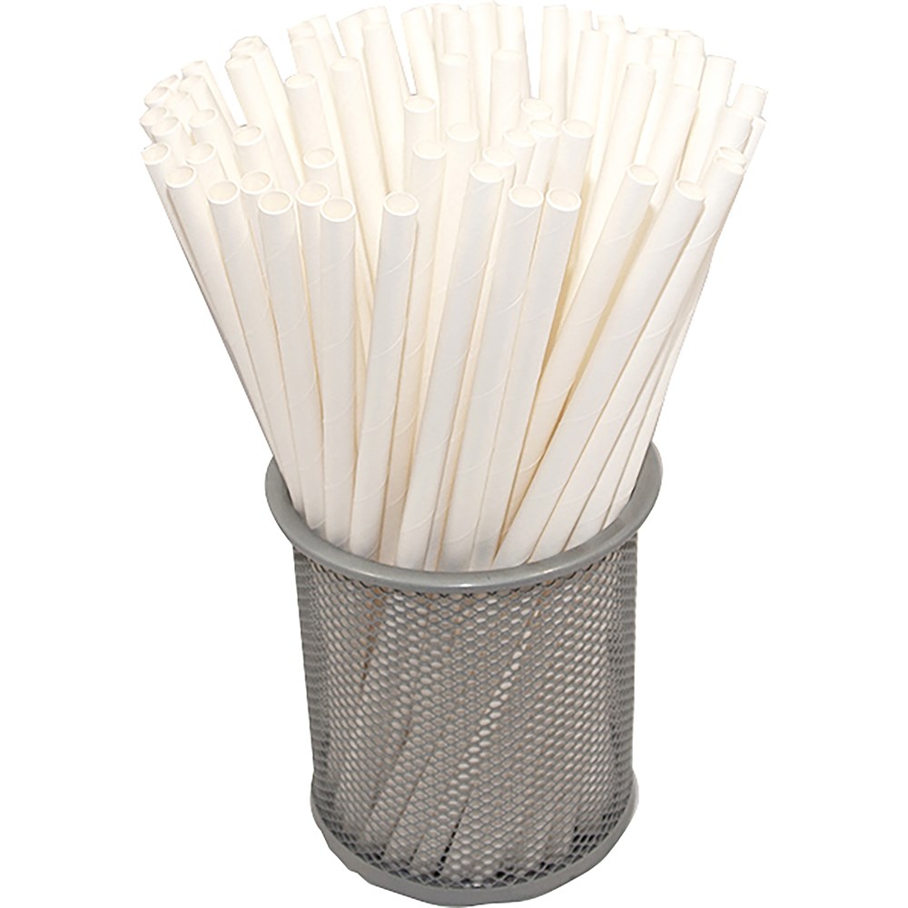 Individually wrapped biodegradable paper straws.