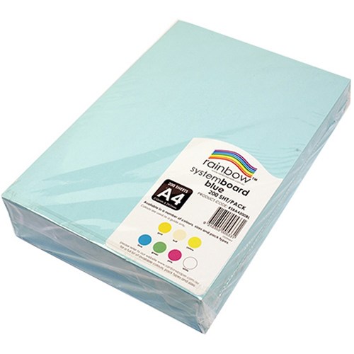 RAINBOW SYSTEM BOARD 200GSM BL A4 Blue Pack of 200 AUP-RSBA4200BL