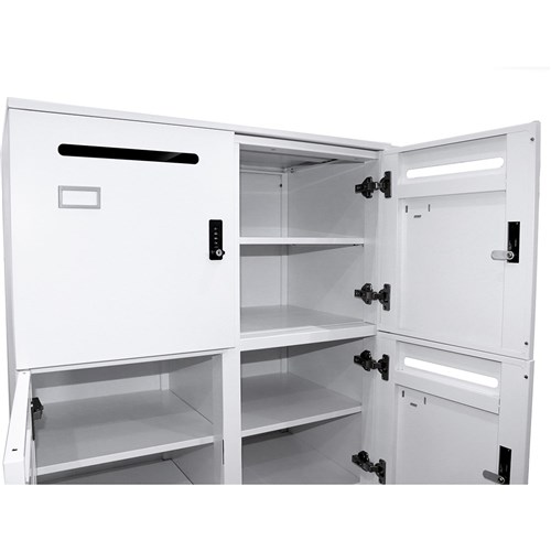 4 digit combination lock fitted to each door with both private and public functions. 1 x master key provided with each unit.