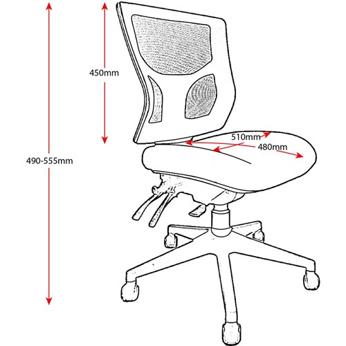Chair Dimensions: Seat 510W x 480D x Back 450H x Seat 490-555mmH.