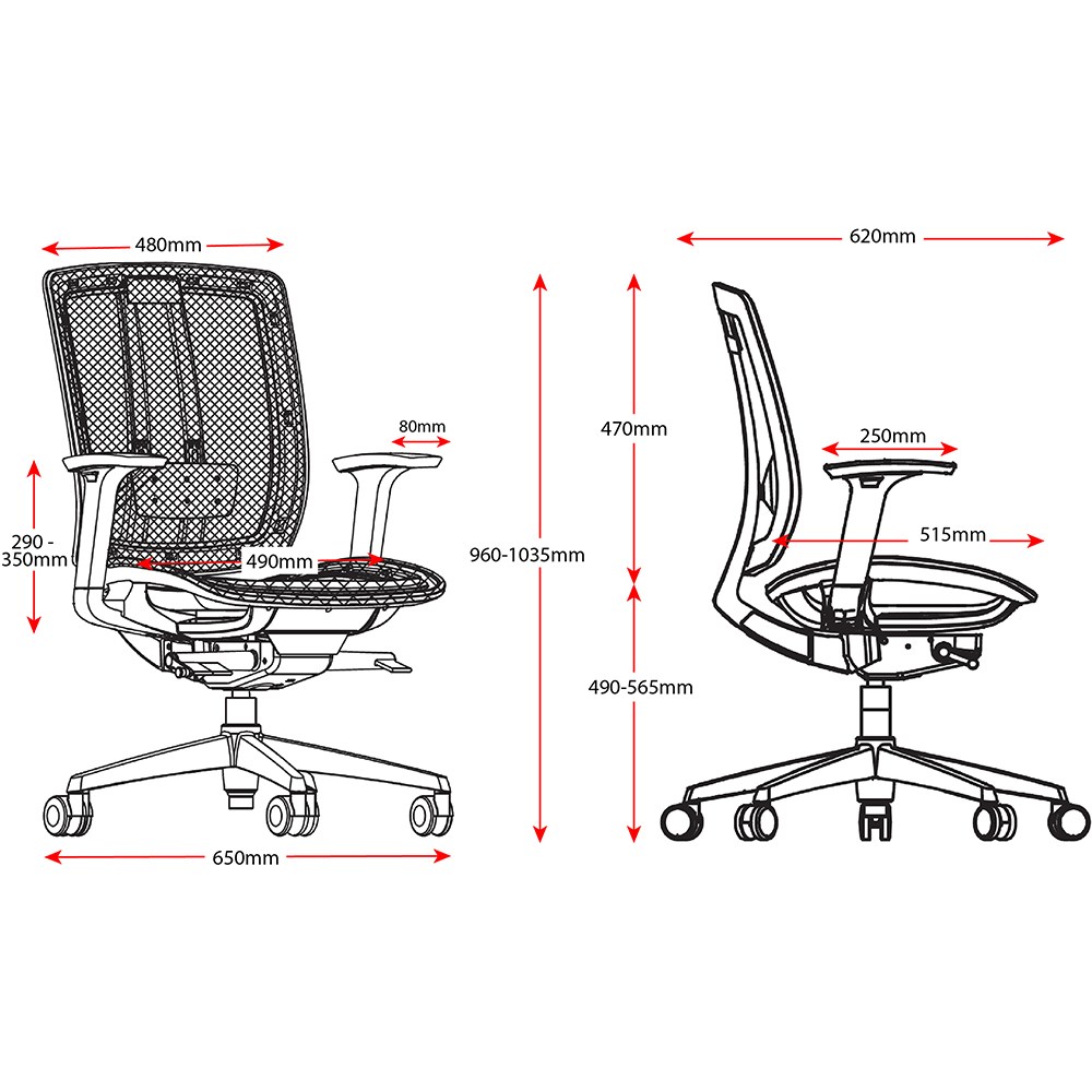 Chair Dimensions: Seat 490W x 515D x Seat 470-540mmH. Overall height: 1150-1220mmH.