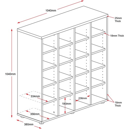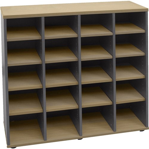 PIGEON HOLE UNIT 16 SHELVES 20 HOLES 4 VERT BEECH/IRONSTON 1040MMW X 380MMD X 1040MMH