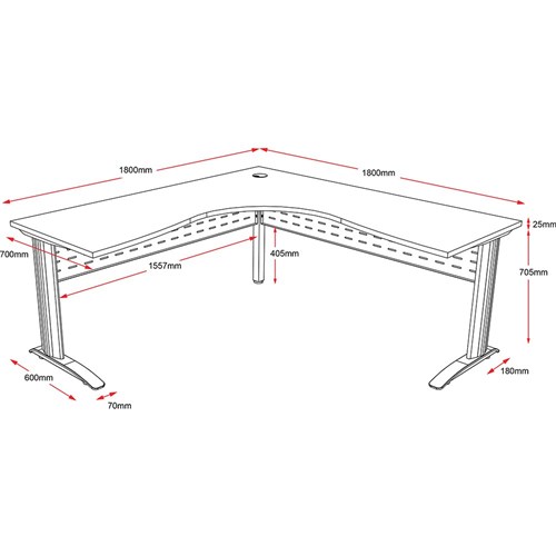 Comes with metal perforated modesty panel and cable tidy.