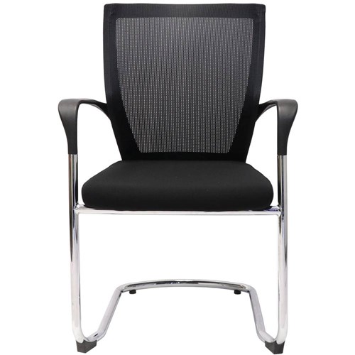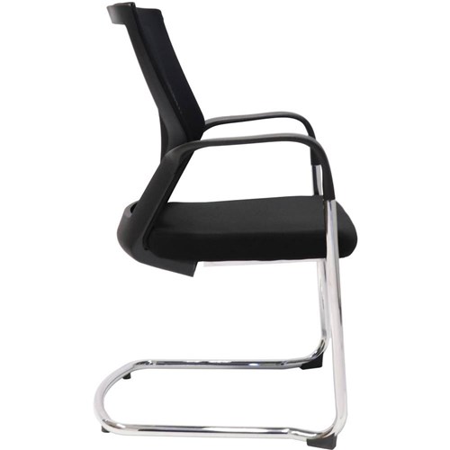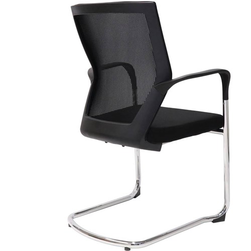 RAPID VISITOR CHAIR MESH BACK CHROME CANTILEVER 120KG WEIGHT RATE BLACK FABRIC SEAT