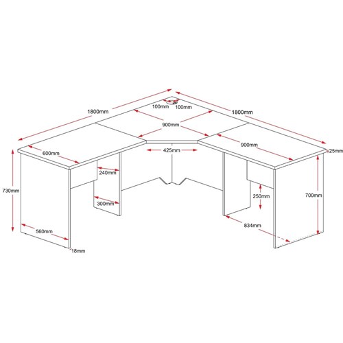 Rapidline Corner Workstation 1800Wx1800Wx600mmH 3 Piece Beech & Ironstone
