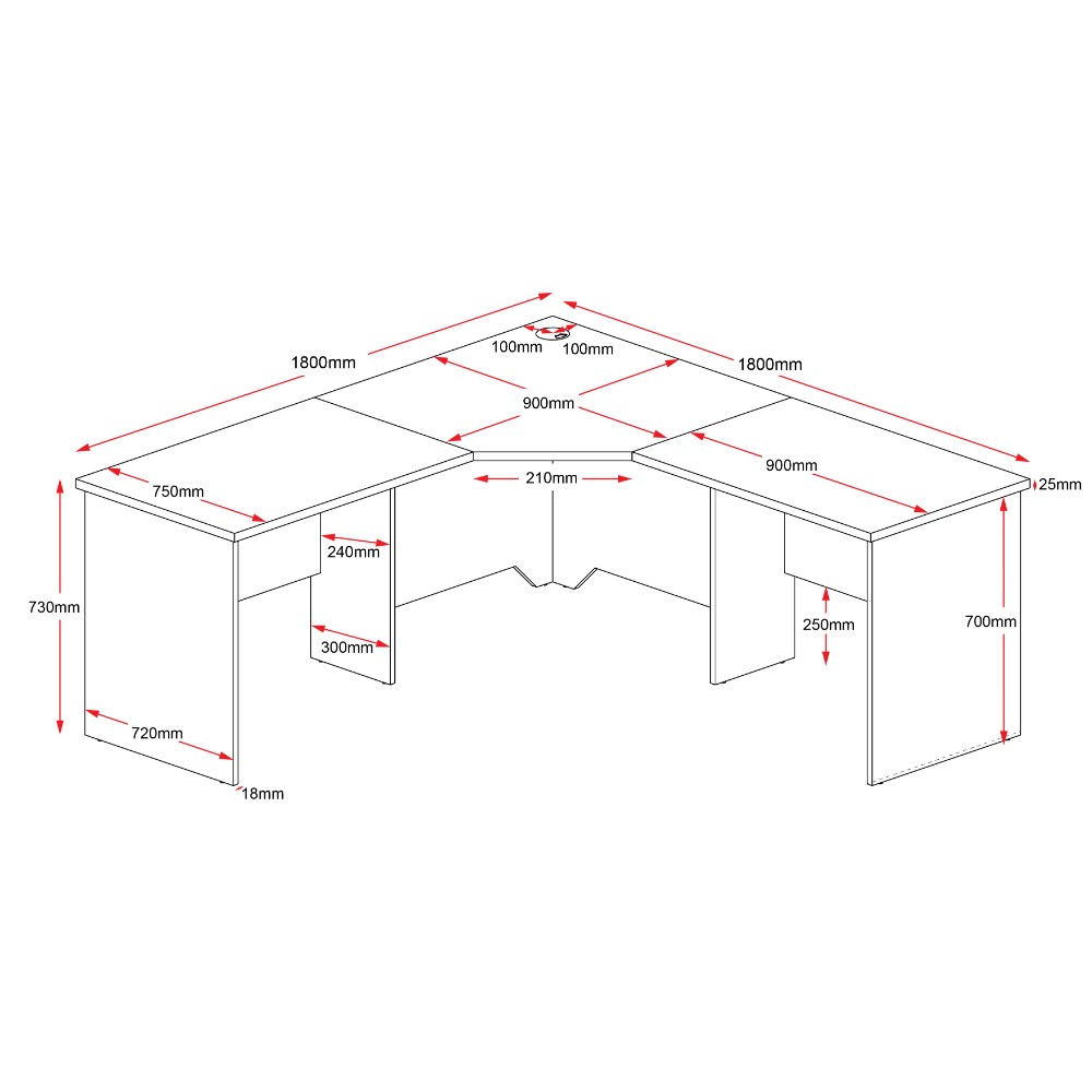 RAPID WORKER CORNER DESK 3 PIECE COMPLETE 1800x1800x750 CHERRY IRONSTONE WORKSTATION