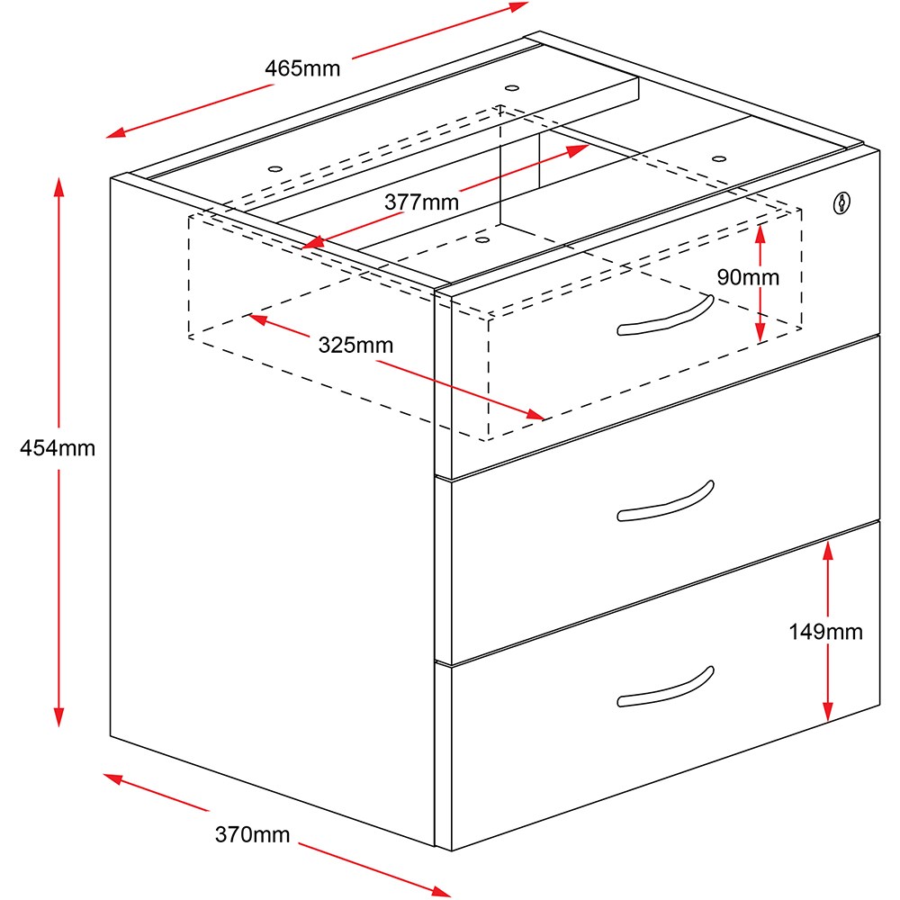 Rapid Worker Fixed Pedestal 3 Drawer 454Hx465Wx370mmD Ironstone