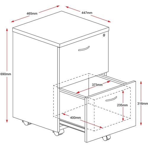 Rapid Worker Mobile Pedestal 2 Drawer 690Hx465Wx447mmD filing cabinet Ironstone