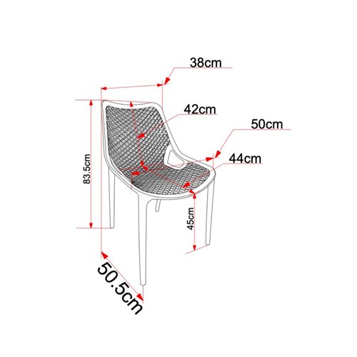 Back Height: 420mm. Seat Height Floor To Seat: 450mm. Overall Height: 835mm.