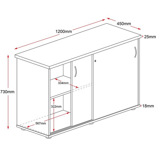 Rapidline Credenza Sliding Doors 730Hx1200Wx450mmD Natural White and Ironstone