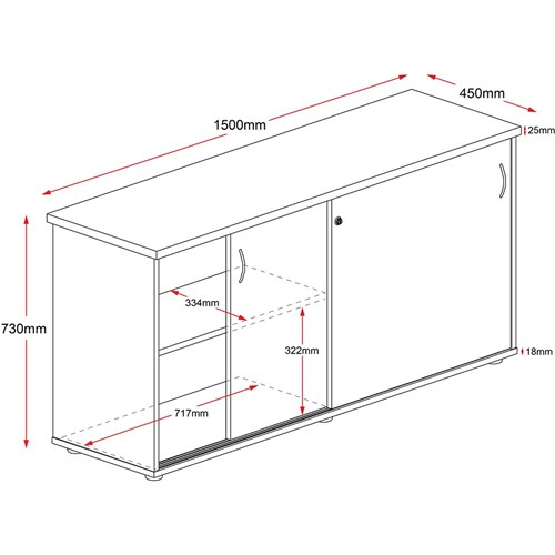 SLIDING DOOR CREDENZA LOCKABLE 1500W X 450D X 730H CHERRY IRONSTONE