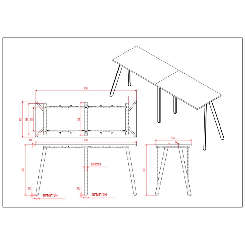 Dimensions: 3000W x 750D x 1050mmH.