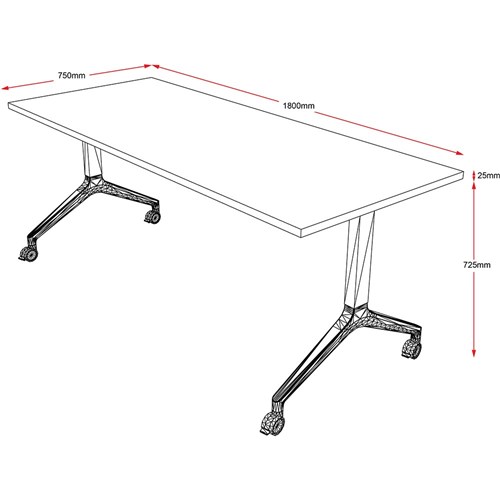 Rapidline Flip Top Table 730Hx1800Wx750mmD Cherry Top Silver Frame