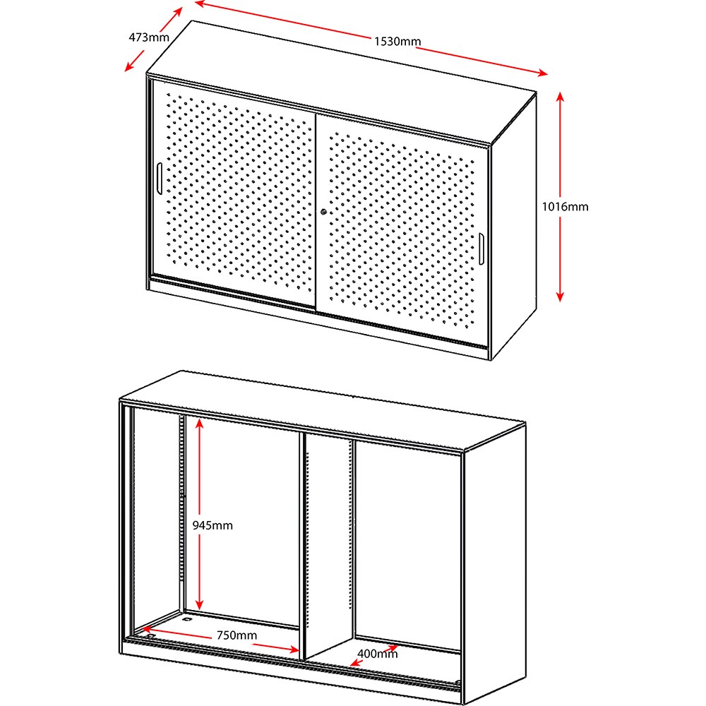 Rapidline Go Perforated Slidin Door Steel Cupboard 1530W x 473D x 1016mmH White
