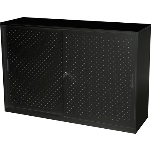 Rapidline Go Perforated Sliding Door Cupboard 1530W x 473D x 1016mmH Black