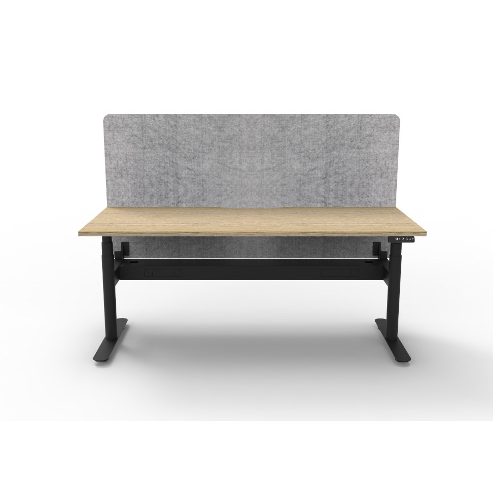 Rapidline Halo+ Single Sided Workstation + Grey Eco Screen +Tray 1800Wx620-1270mmH Oak/Bl
