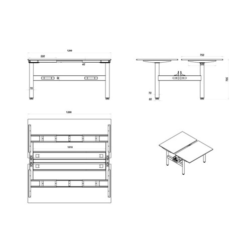 Desk Per User Dimensions: 1200W x 750D x 730mmH. Height With Screen: 1330mm.