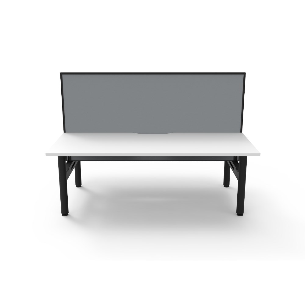 Natural White top Black Satin frame. Double sided workstation with screen.