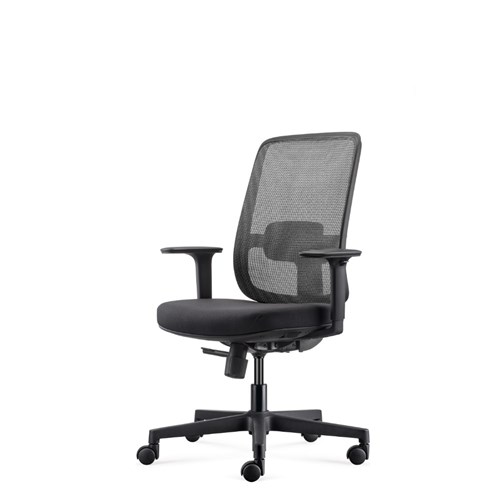 Lotto medium back operator chair. Medium back. Black with grey backed mesh and black fabric seat. Black PP and fiberglass mix frame.