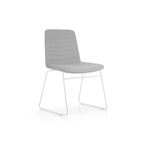 Rapidline Pixel Visitor Chair White Sled Base Light Grey Fabric Seat