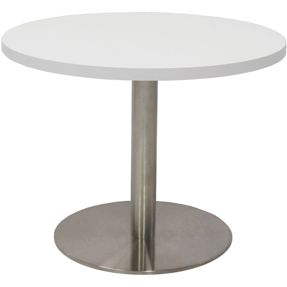 Rapidline Round Coffee Table 600mm Diam Top Natural White Stainless Steel Disk Base