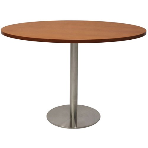 RAPIDLINE ROUND MEETING TABLE 1200MM DIAMETER CHERRY TOP WITH STAINLESS STEEL BASE
