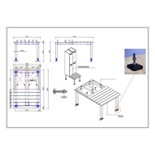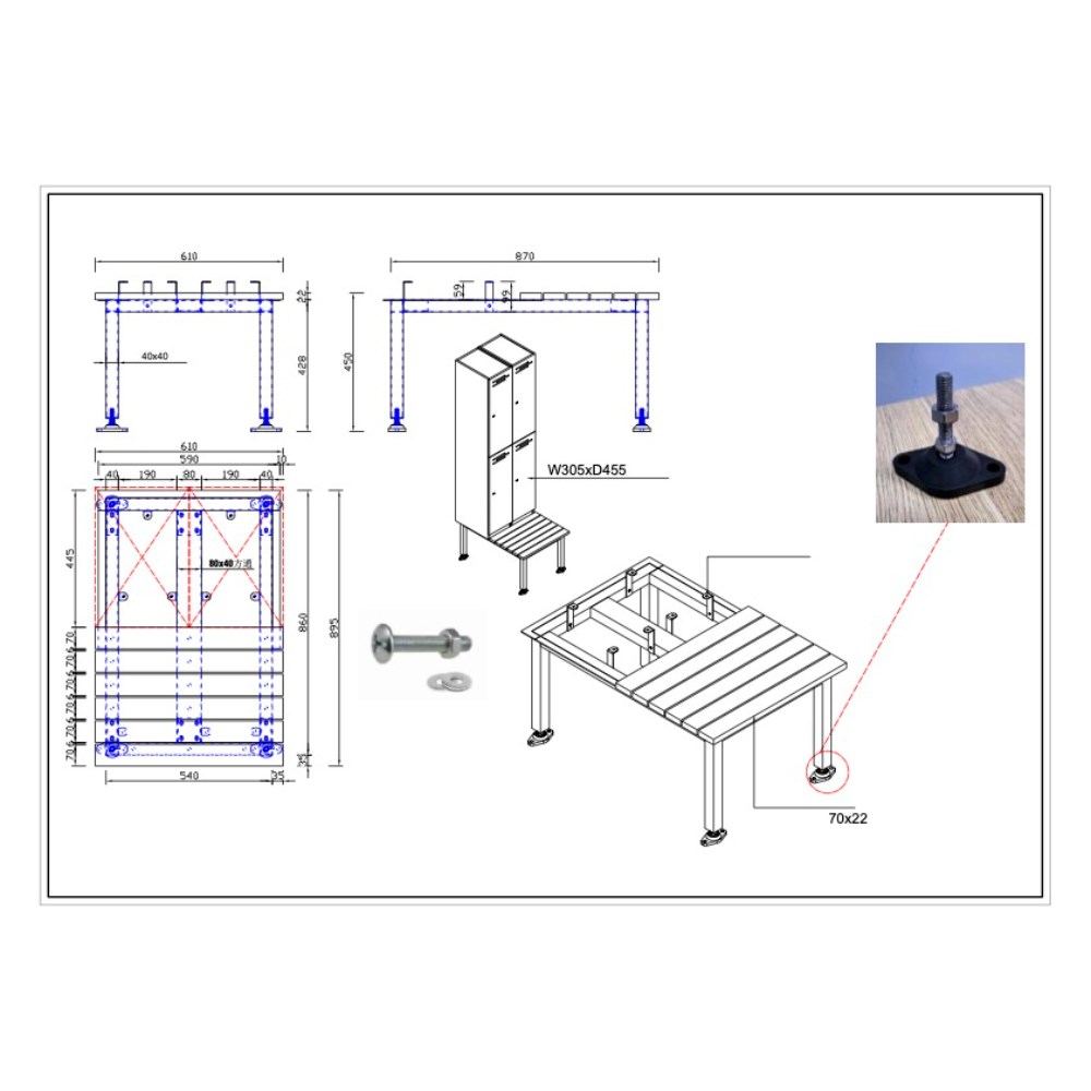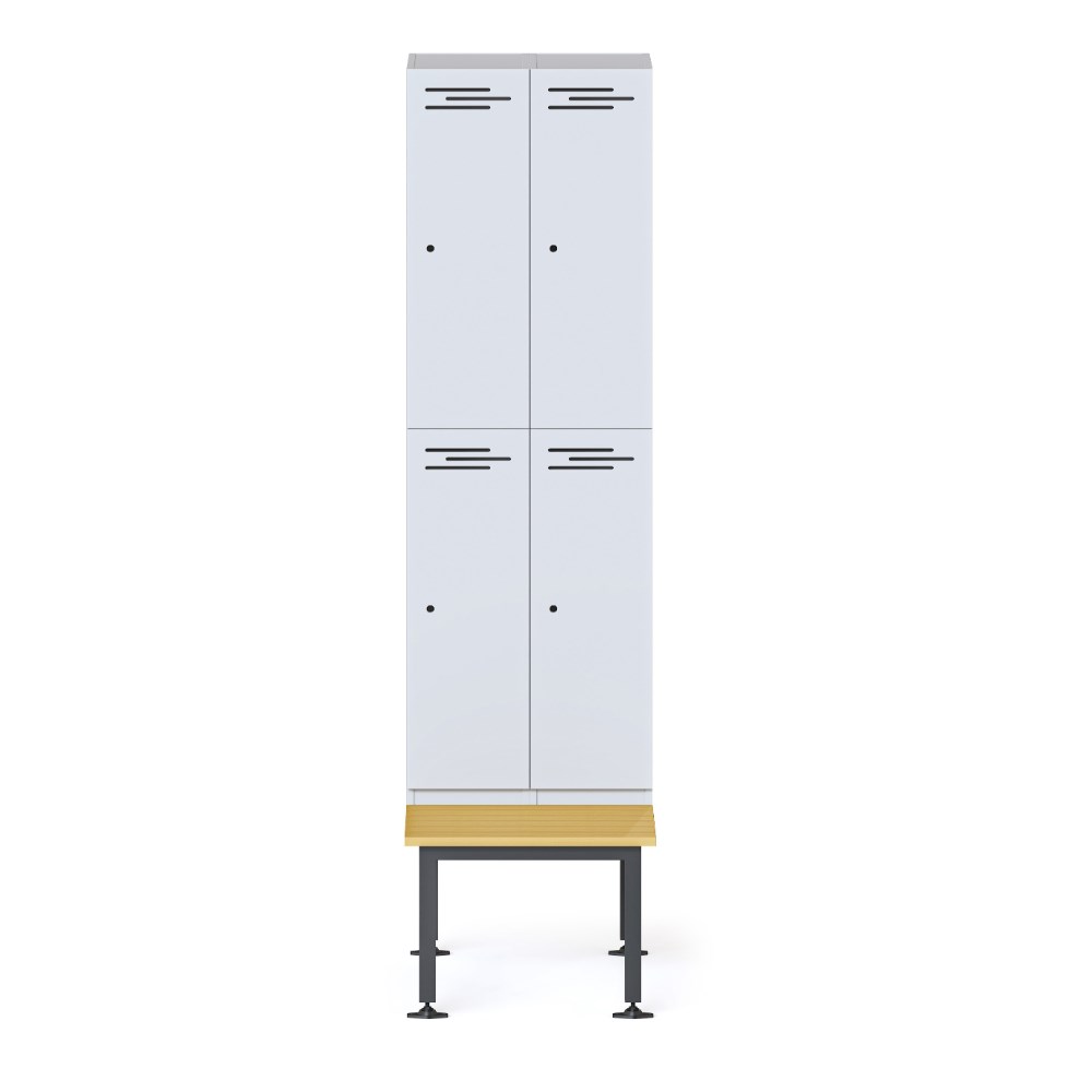 Allows the user to sit in front of the locker to change whilst allowing for cleaning underneath the unit.