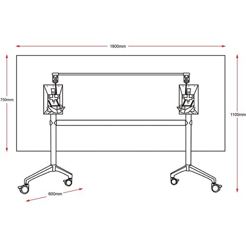 Rapidline Typhoon Flip Top Table 1800W x 750D x 750mmH White Top All Black Frame