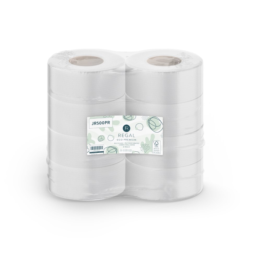 Regal Eco Premium Recycled Perforated Jumbo Toilet Paper Rolls 1 Ply 500m Pack of 8