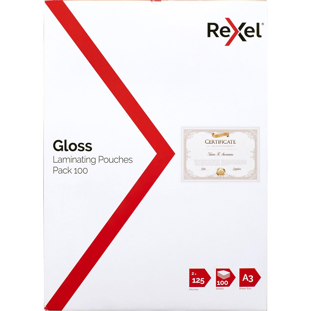 REXEL LAMINATING POUCHES A3 PK100 2X125 MICRON XXX