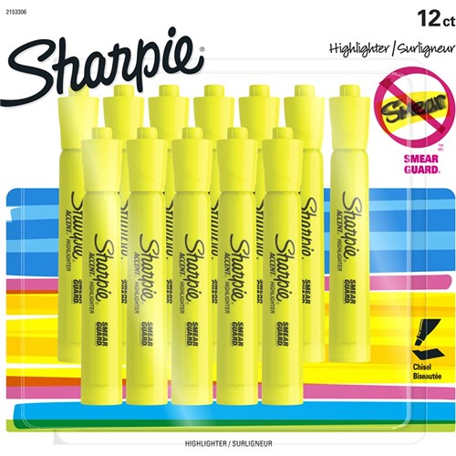 Sharpie Tank Highlighter Marker Chisel Tip Fluorescent Yellow Pack of 12