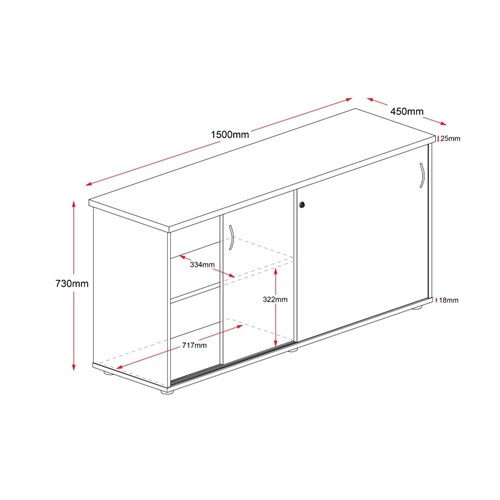 SLIDING DOOR CREDENZA LOCKABLE 1500W X 450D X 730H CHERRY IRONSTONE