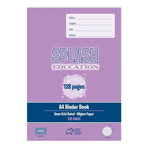 Splash A4 Grid Binder Exercise Book 5mm 128 Page